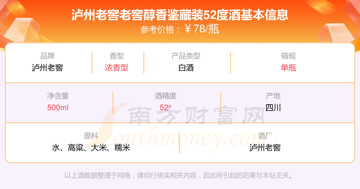 泸州老窖老窖醇香鉴藏装52度基本信息