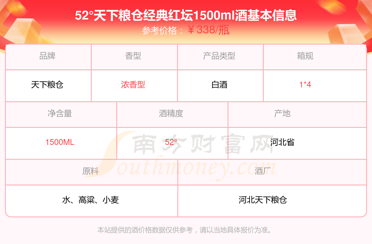 52°天下粮仓经典红坛1500ml基本信息