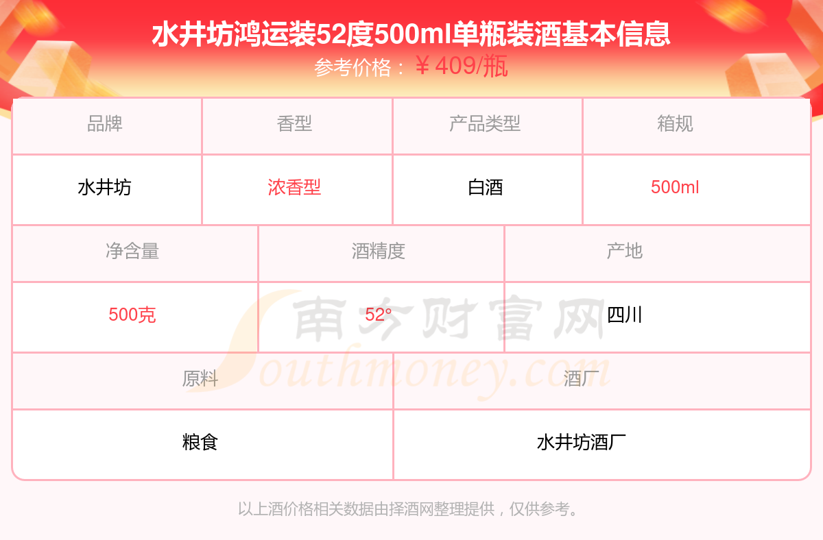 水井坊鸿运装52度500ml单瓶装基本信息