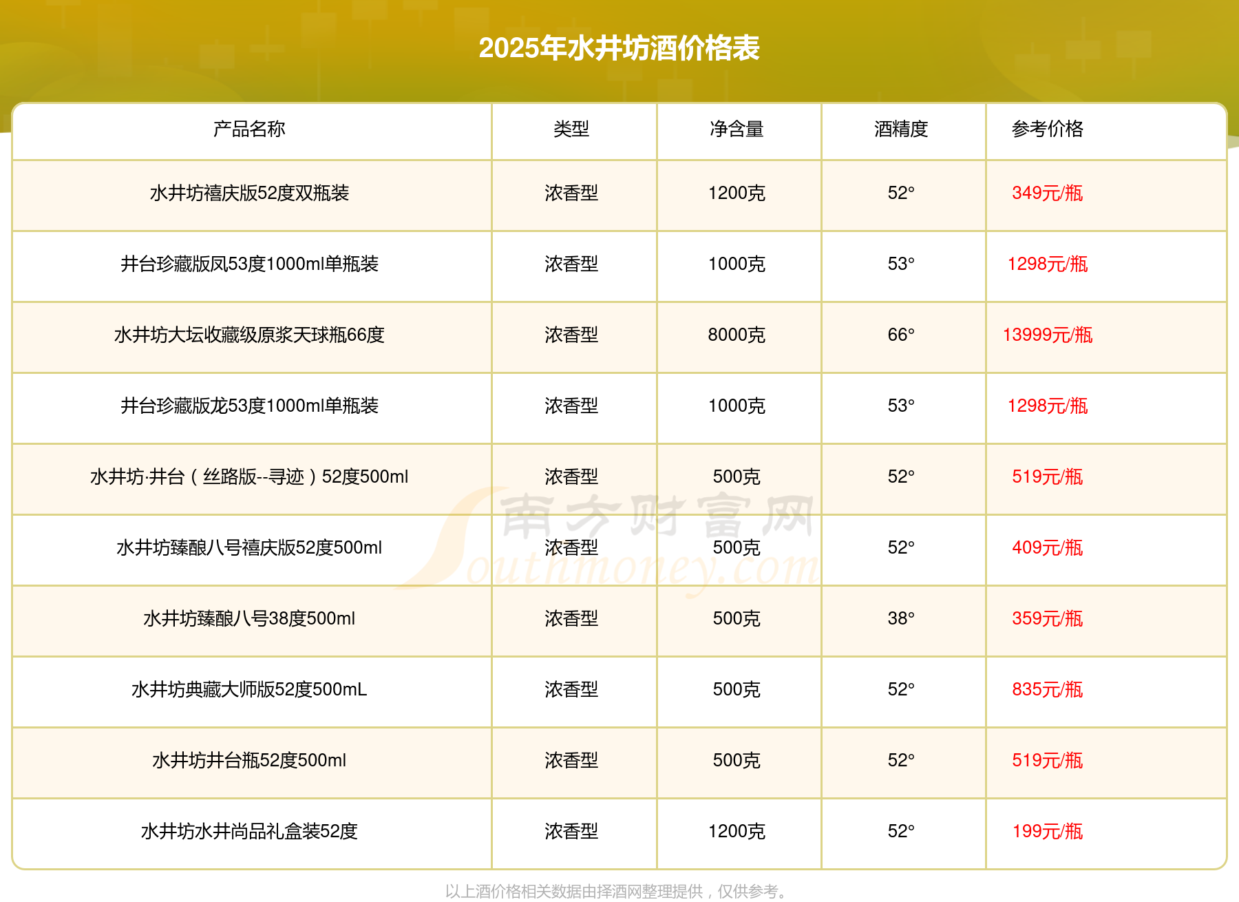 以上酒价格相关数据由择酒网整理提供,仅供参考。
