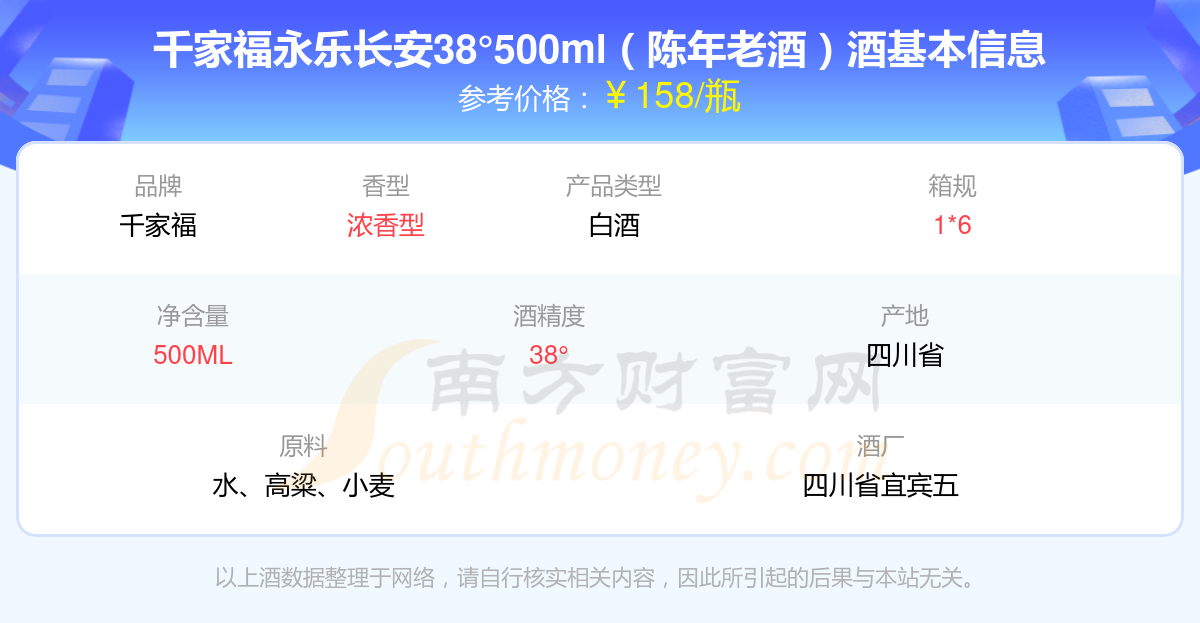 千家福永乐长安38°500ml(陈年老酒)基本信息