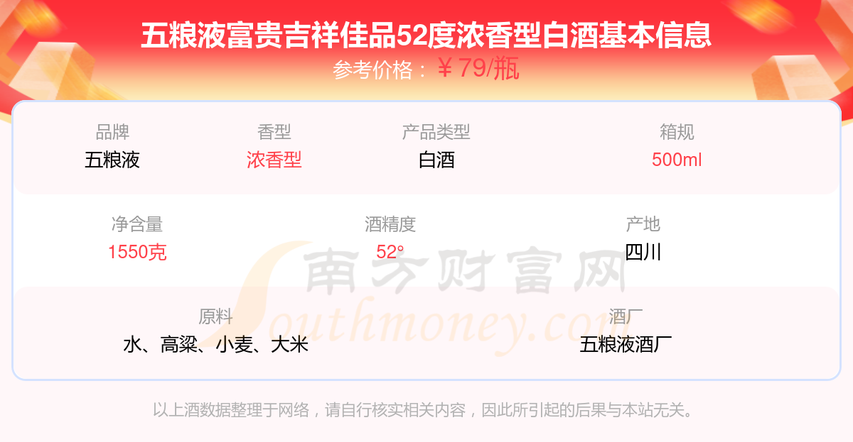 五粮液富贵吉祥佳品52度浓香型白酒基本信息