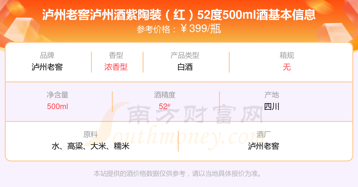 泸州老窖泸州酒紫陶装(红)52度500ml基本信息