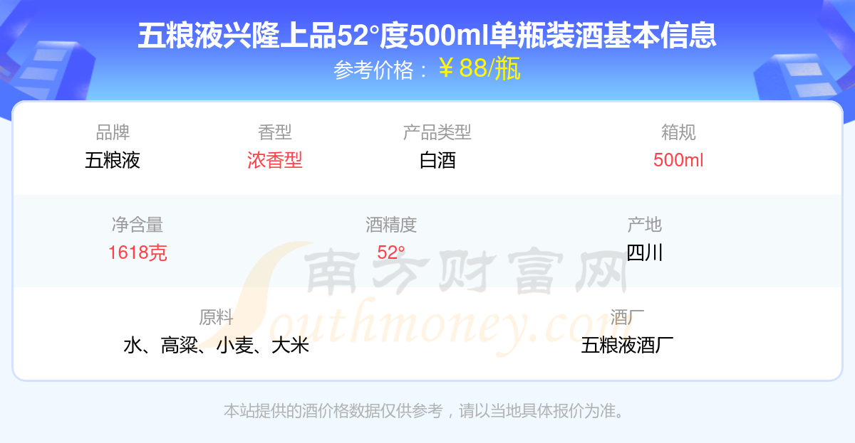 五粮液兴隆上品52°度500ml单瓶装基本信息