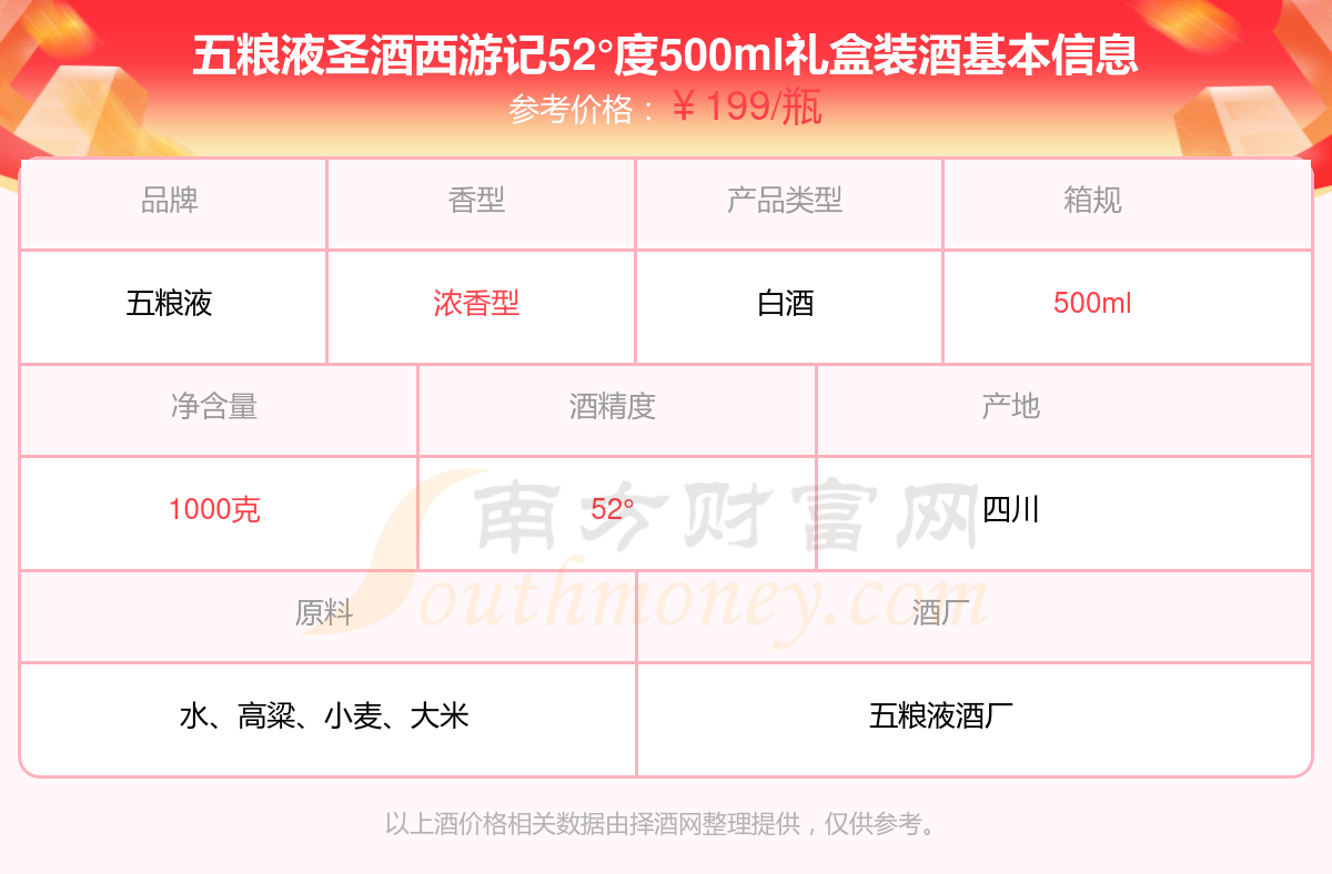 五粮液圣酒西游记52°度500ml礼盒装基本信息