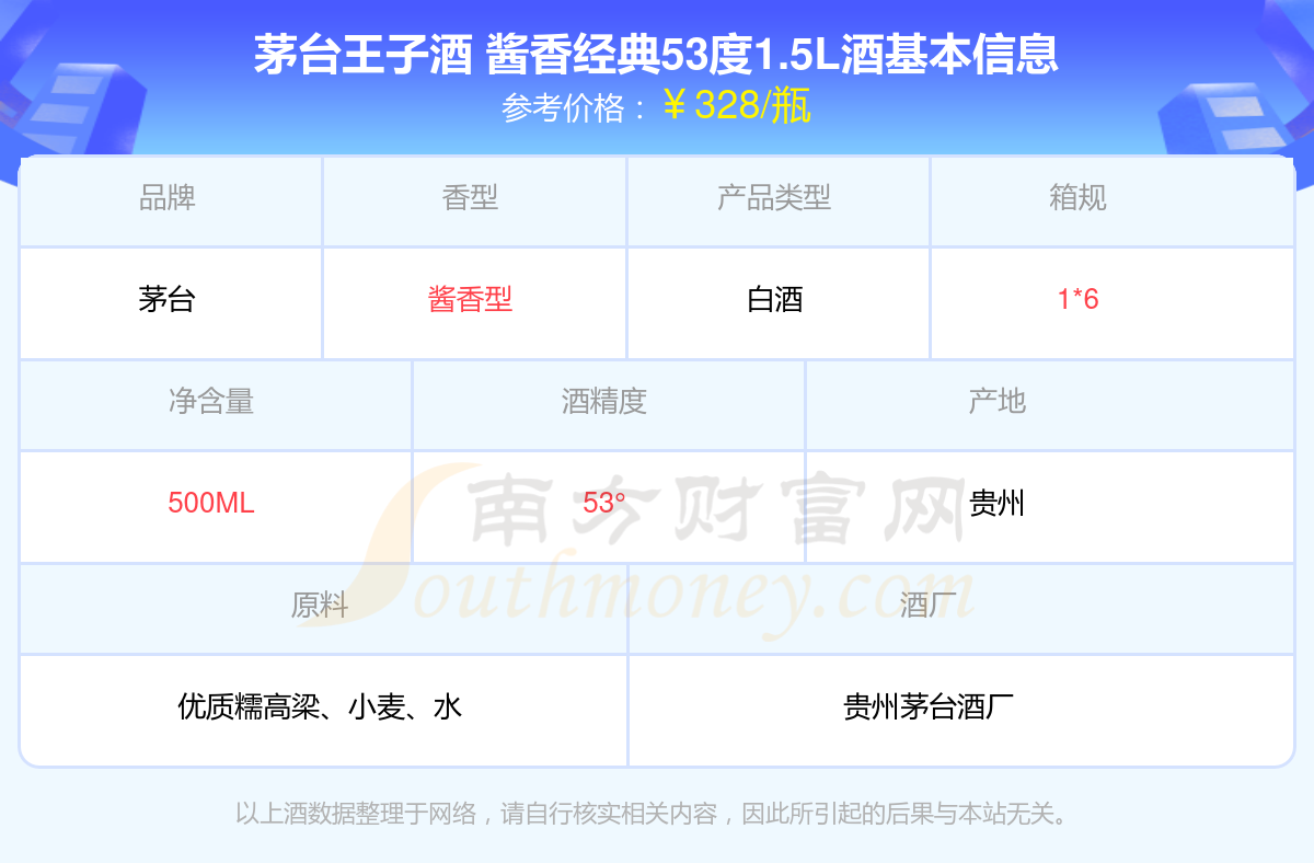 茅台王子酒 酱香经典53度1.5L基本信息