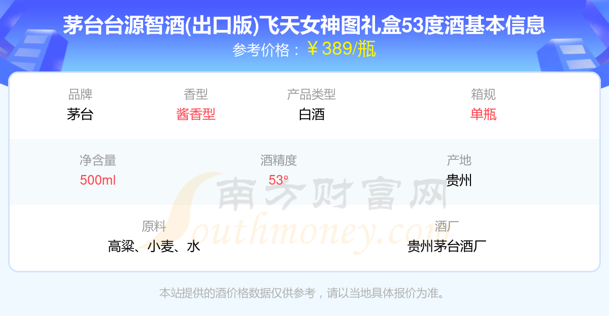 茅台台源智酒(出口版)飞天女神图礼盒53度基本信息