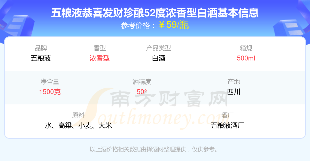 五粮液恭喜发财珍酿52度浓香型白酒基本信息