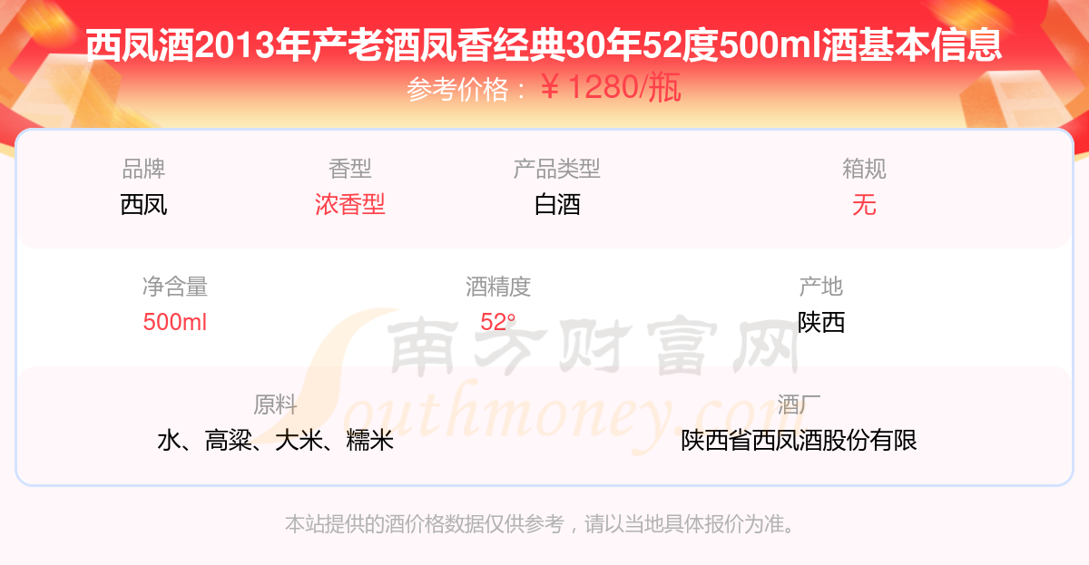 西凤酒2013年产老酒凤香经典30年52度500ml基本信息