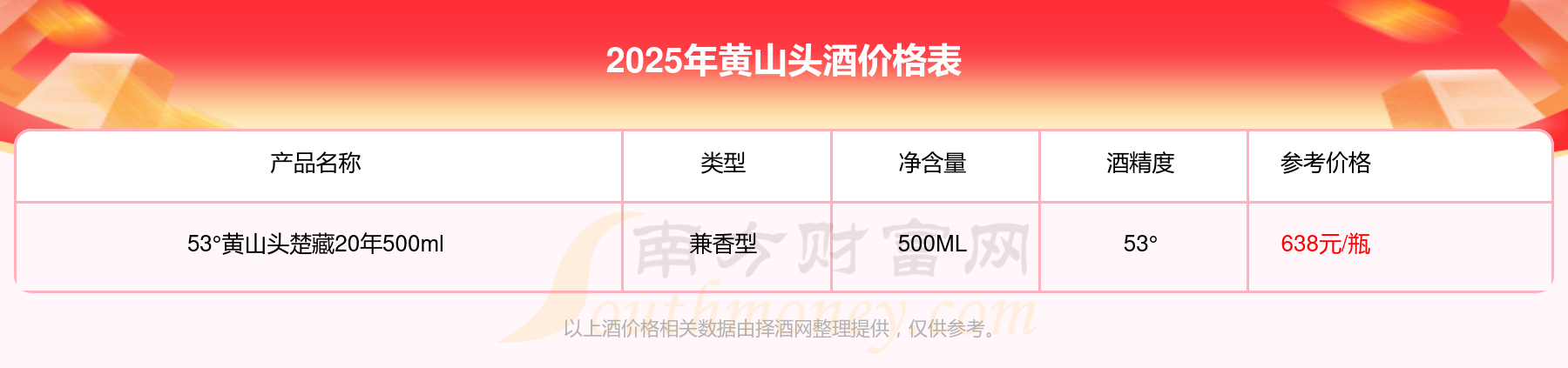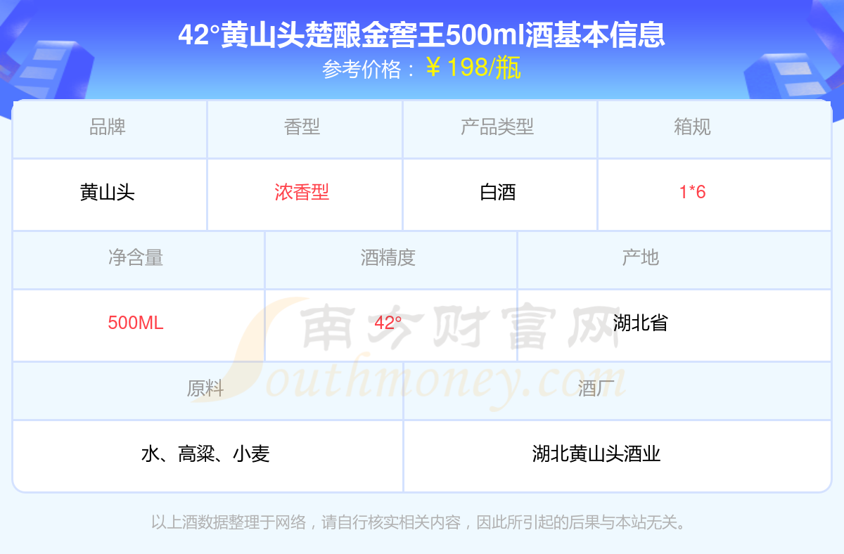 42°黄山头楚酿金窖王500ml基本信息