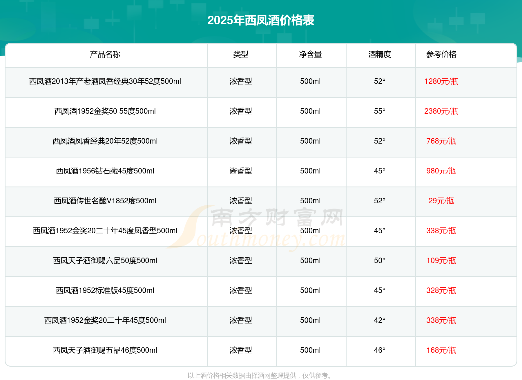 以上酒价格相关数据由择酒网整理提供,仅供参考。