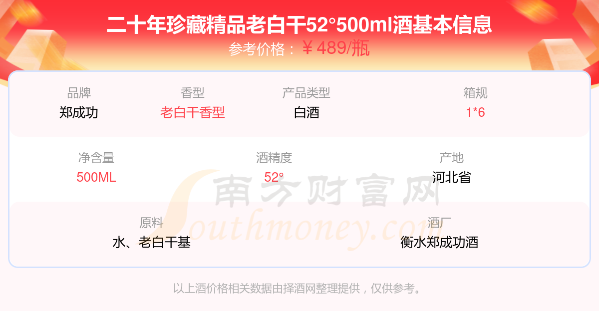 二十年珍藏精品老白干52°500ml基本信息