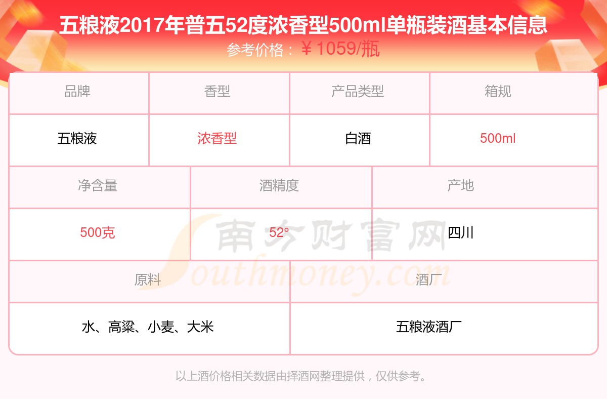 五粮液2017年普五52度浓香型500ml单瓶装基本信息