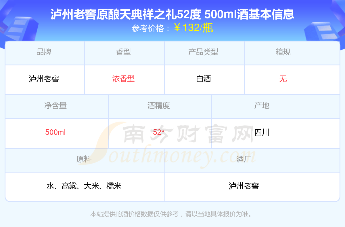 泸州老窖原酿天典祥之礼52度 500ml基本信息