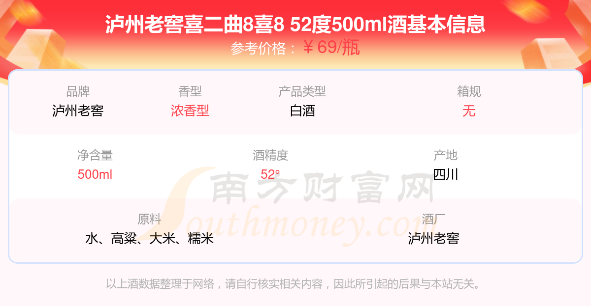 泸州老窖喜二曲8喜8 52度500ml基本信息
