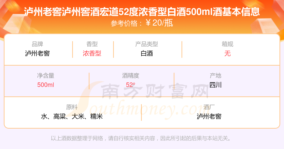 泸州老窖泸州窖酒宏道52度浓香型白酒500ml基本信息