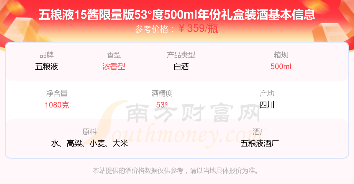 五粮液15酱限量版53°度500ml年份礼盒装基本信息