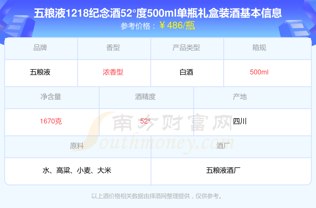 五粮液1218纪念酒52°度500ml单瓶礼盒装基本信息