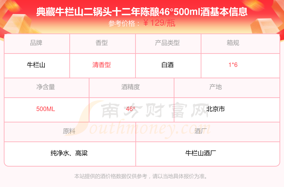 典藏牛栏山二锅头十二年陈酿46°500ml基本信息