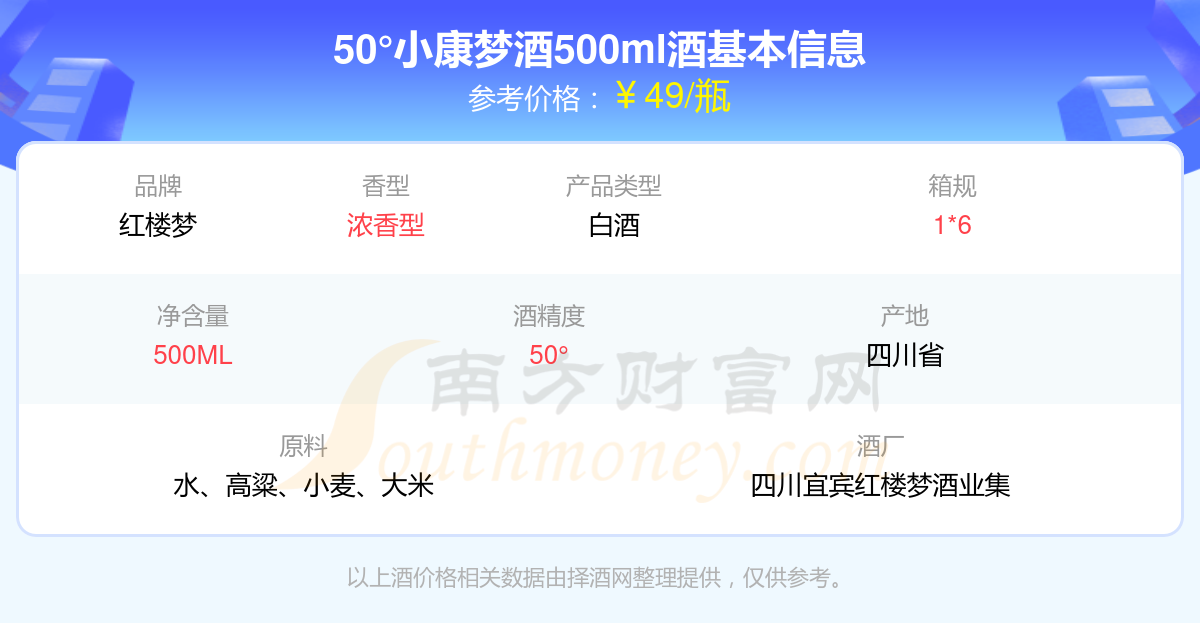 50°小康梦酒500ml基本信息