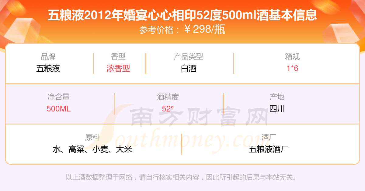 五粮液2012年婚宴心心相印52度500ml基本信息