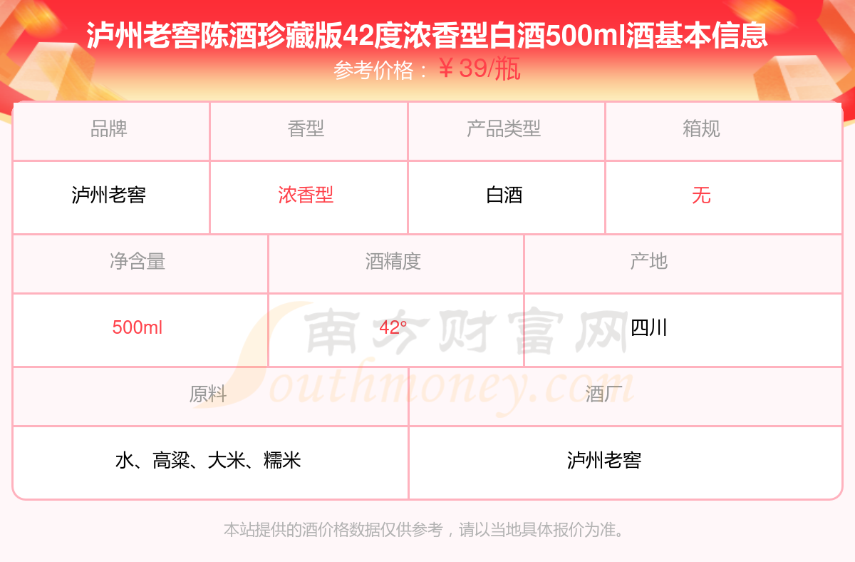 泸州老窖陈酒珍藏版42度浓香型白酒500ml基本信息