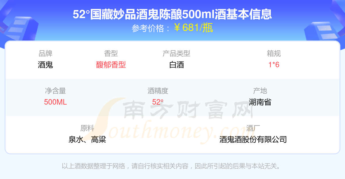 52°国藏妙品酒鬼陈酿500ml基本信息