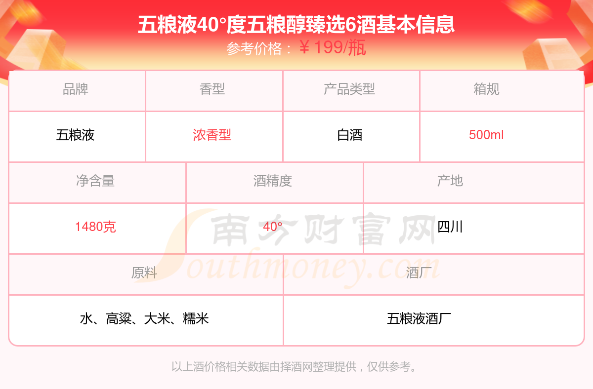 五粮液40°度五粮醇臻选6基本信息