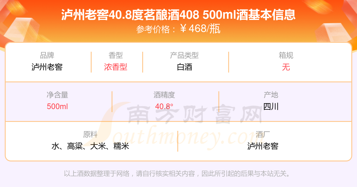 泸州老窖40.8度茗酿酒408 500ml基本信息