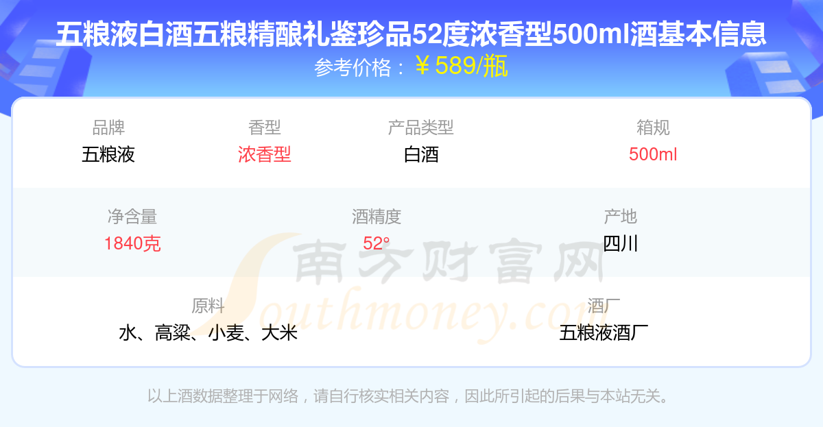 五粮液白酒五粮精酿礼鉴珍品52度浓香型500ml基本信息