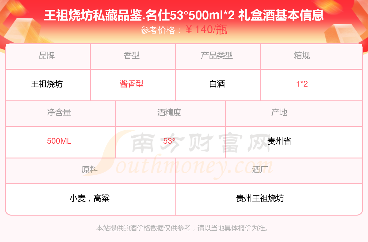 王祖烧坊私藏品鉴.名仕53°500ml*2 礼盒基本信息