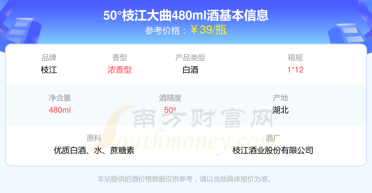 50°枝江大曲480ml基本信息
