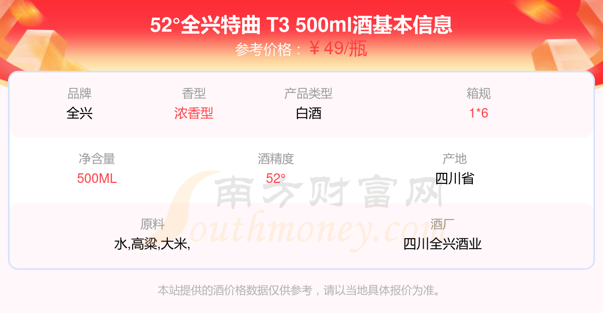 52°全兴特曲 T3 500ml基本信息