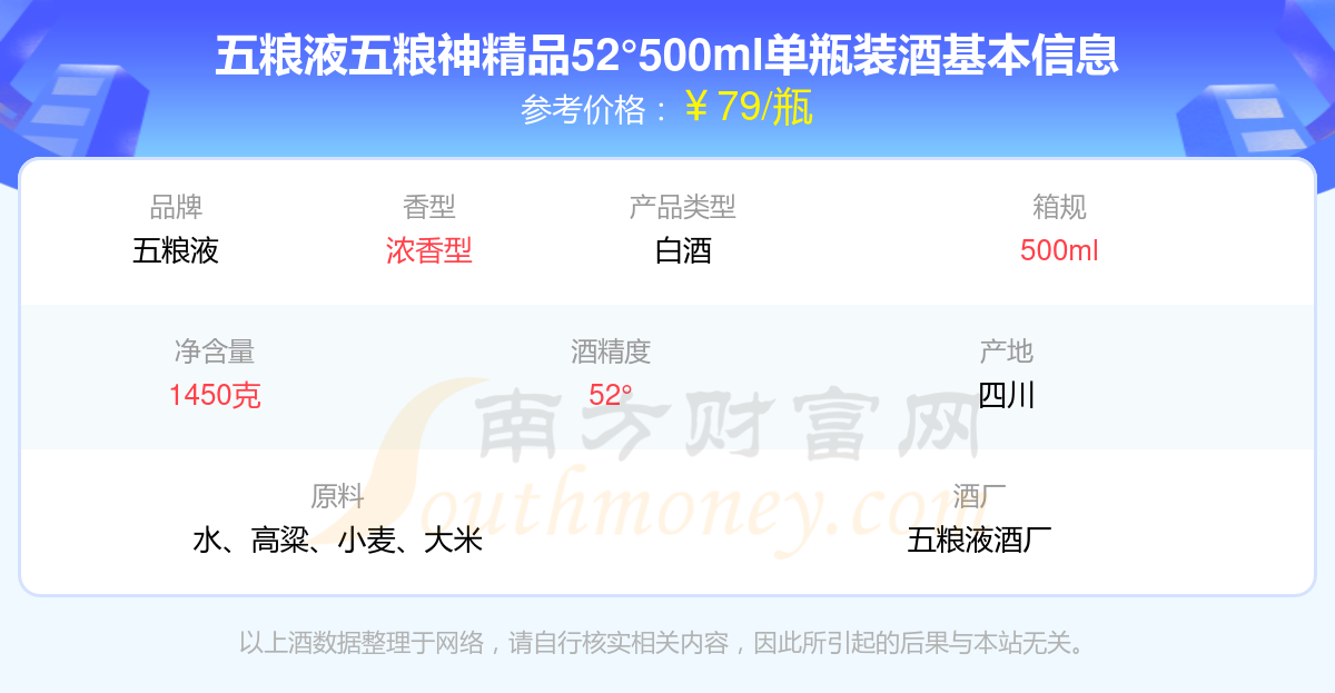 五粮液五粮神精品52°500ml单瓶装基本信息