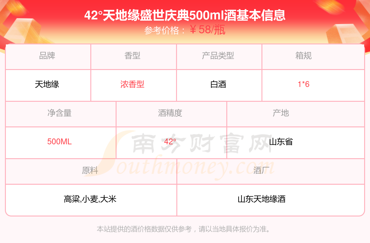 42°天地缘盛世庆典500ml基本信息