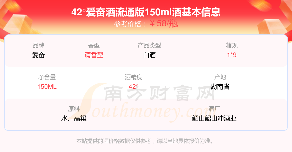 42°爱奋酒流通版150ml基本信息