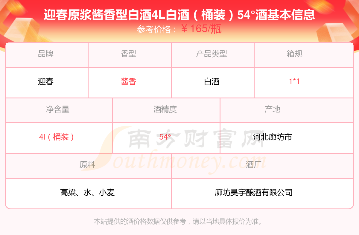 迎春原浆酱香型白酒4L白酒(桶装)54°基本信息