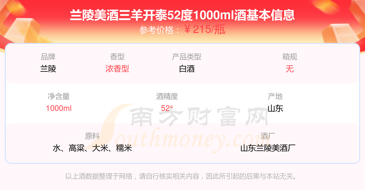 兰陵美酒三羊开泰52度1000ml基本信息