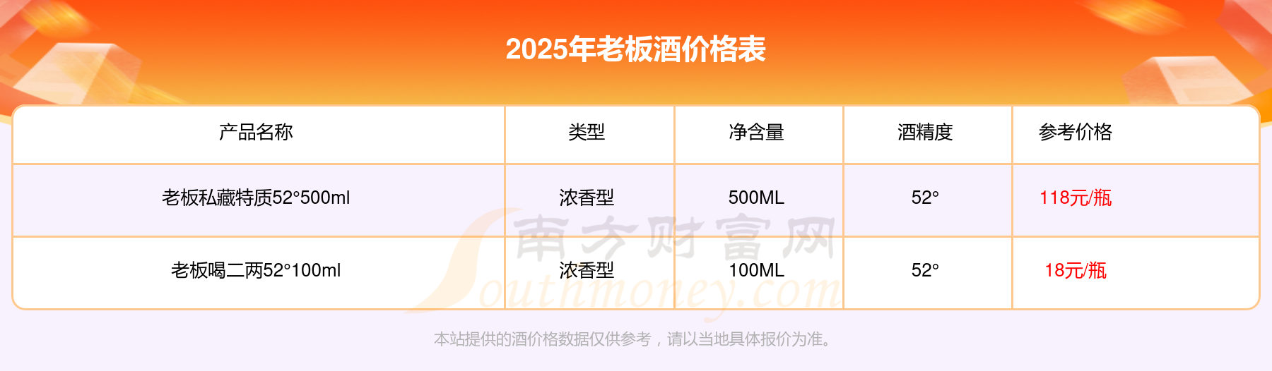 2025老板酒最新价格: