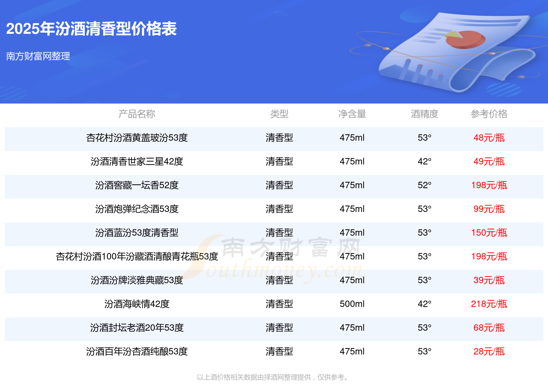 汾酒清香型酒最新价格2025:汾酒原浆一坛香60°3000ml参考价2180元/瓶、汾酒原浆一坛香60°1500ml参考价1536元/瓶、42度汾酒青花25参考价598元/瓶。