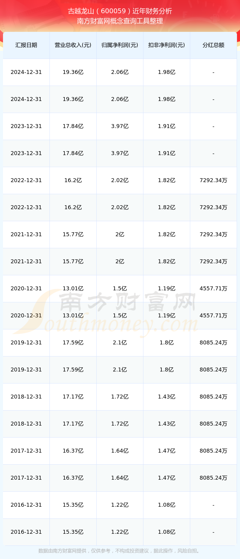 古越龙山财务分析如下图: