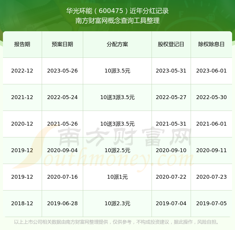 华光环能最新一次公布的分红方案为10派3.5元。本次权益分派股权登记日为2023年5月31日,除权除息日为2023年6月1日,派息日为2023年6月1日。