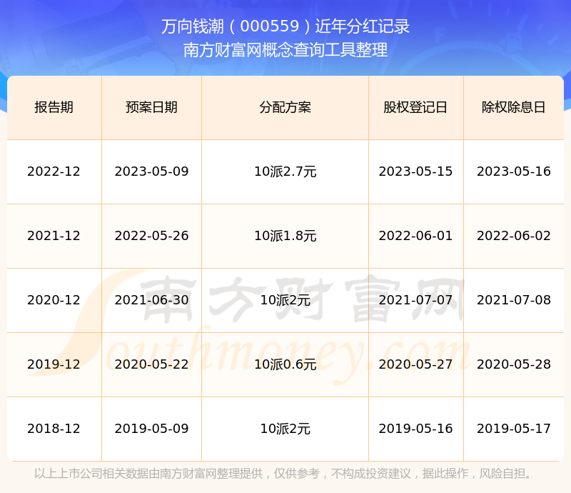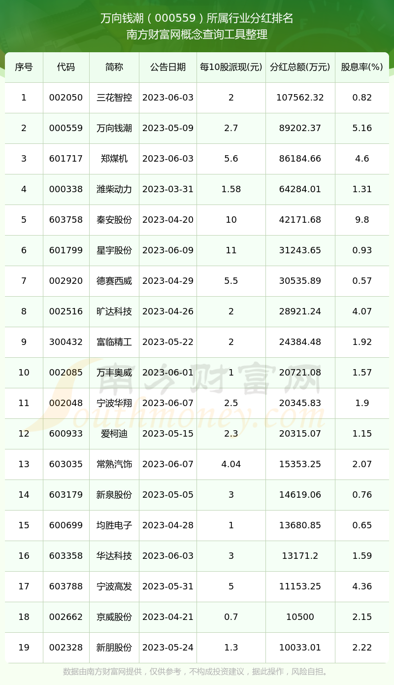 二、万向钱潮000559行业分红排名
