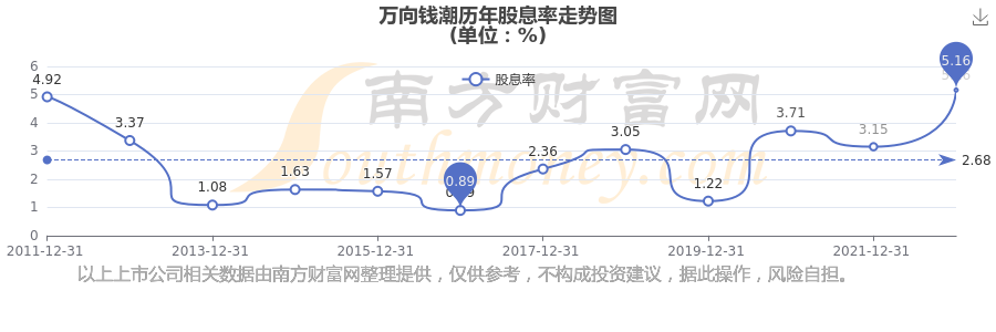 近年万向钱潮年度股息率走势如下图: