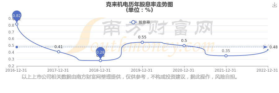 近年克来机电年度股息率走势如下图: