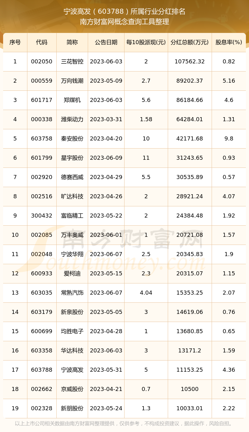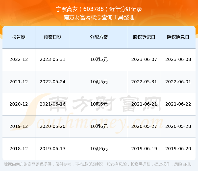 二、宁波高发603788行业分红排名