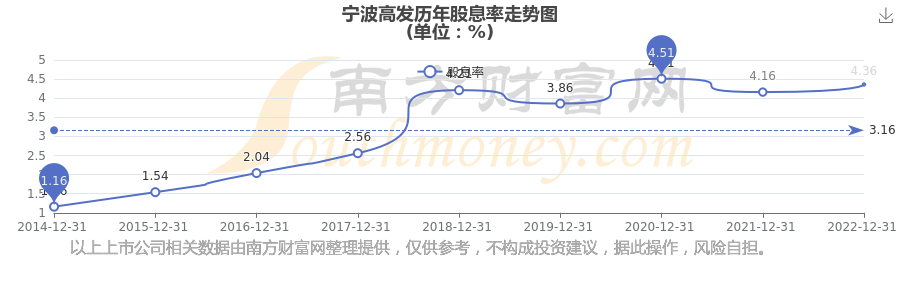 近年宁波高发年度股息率走势如下图: