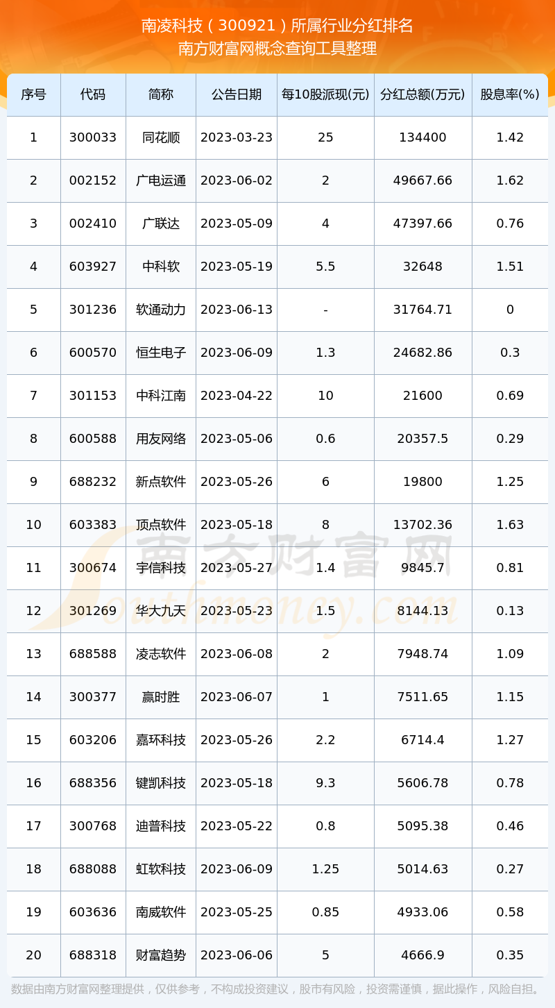 按照开云手机web版登录入口趋势选股系统统计,南凌科技所属行业为软件开发行业,软件开发行业分红排名情况如下表: