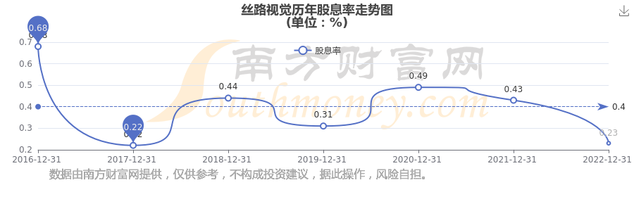 丝路视觉最新一次公布的分红方案为10派0.5元。本次权益分派股权登记日为2023年4月27日,除权除息日为2023年4月28日,派息日为2023年4月28日。