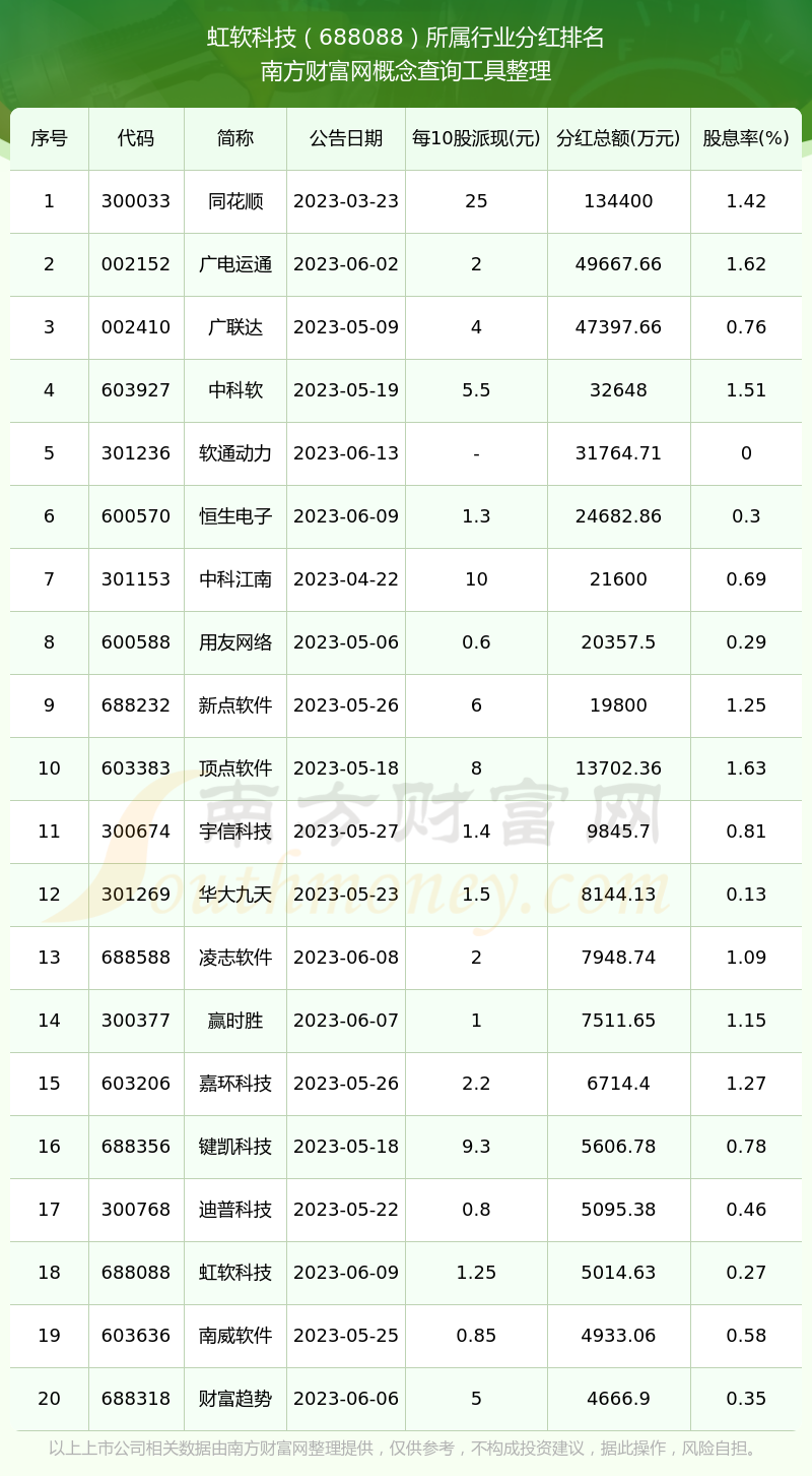 按照开云手机web版登录入口趋势选股系统统计,虹软科技所属行业为技术服务行业,技术服务行业分红排名情况如下表: